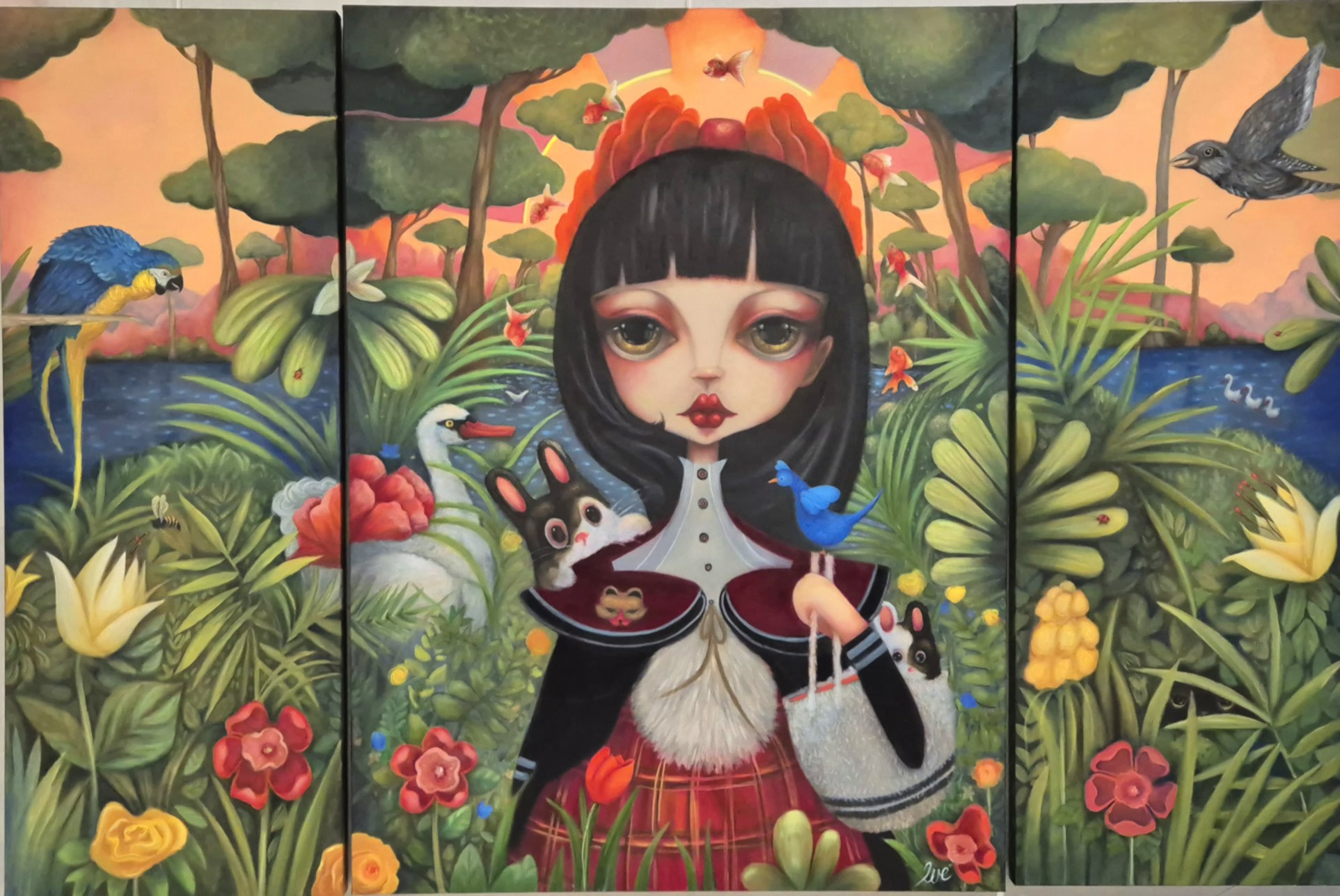 The Wayfarer paused where the goldfish swam high, Her eyes, deep as the woods, held a silent goodbye. With rabbits for courage and a swan for her grace, She carried her curious heart to a new, wilder place.